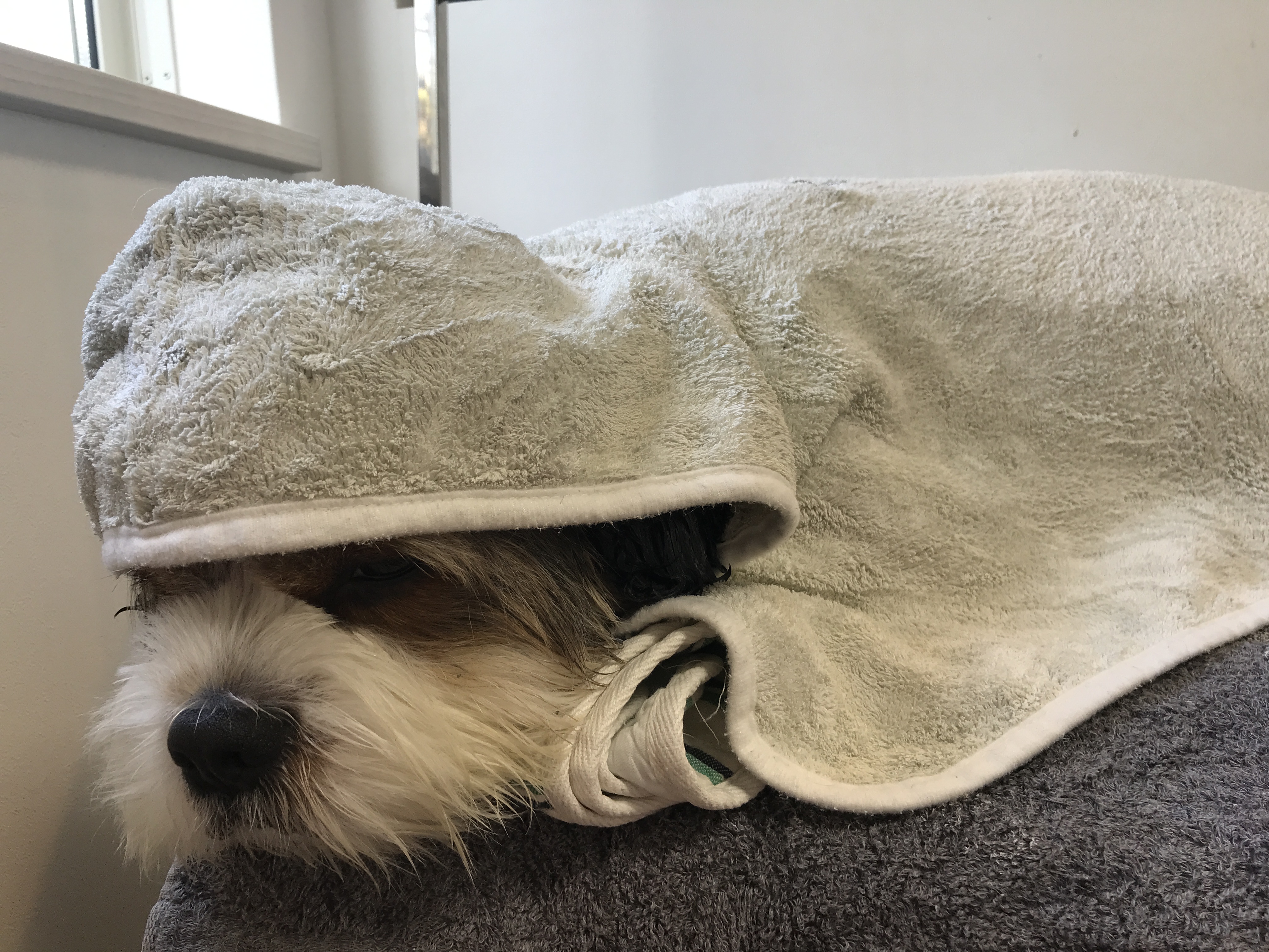 シャンプー後のドライ中も寝てる(笑)